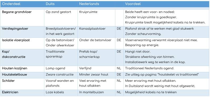 In onderstaande tabel lichten wij een aantal verschillen in de bouwmethodes toe.